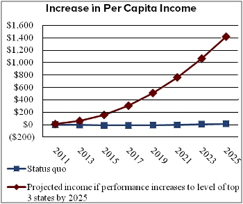 Per capita income increases when the nation meets the 60% credential attainment goal.