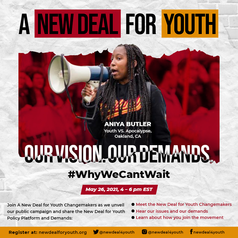 On May 26th, join A New Deal for Youth Changemakers as we unveil our public campaign and share the New Deal for Youth Policy Platform and Demands.